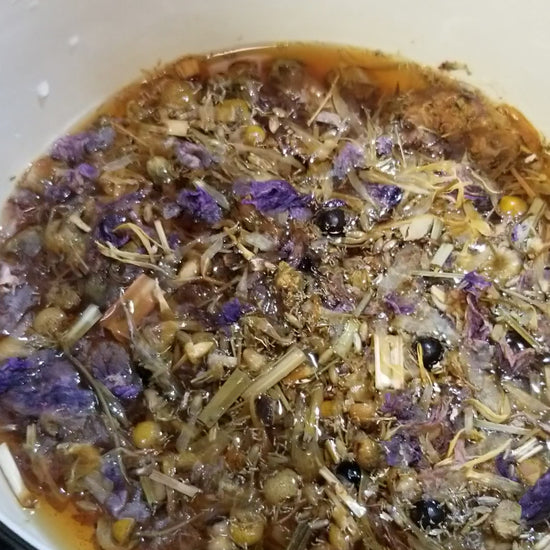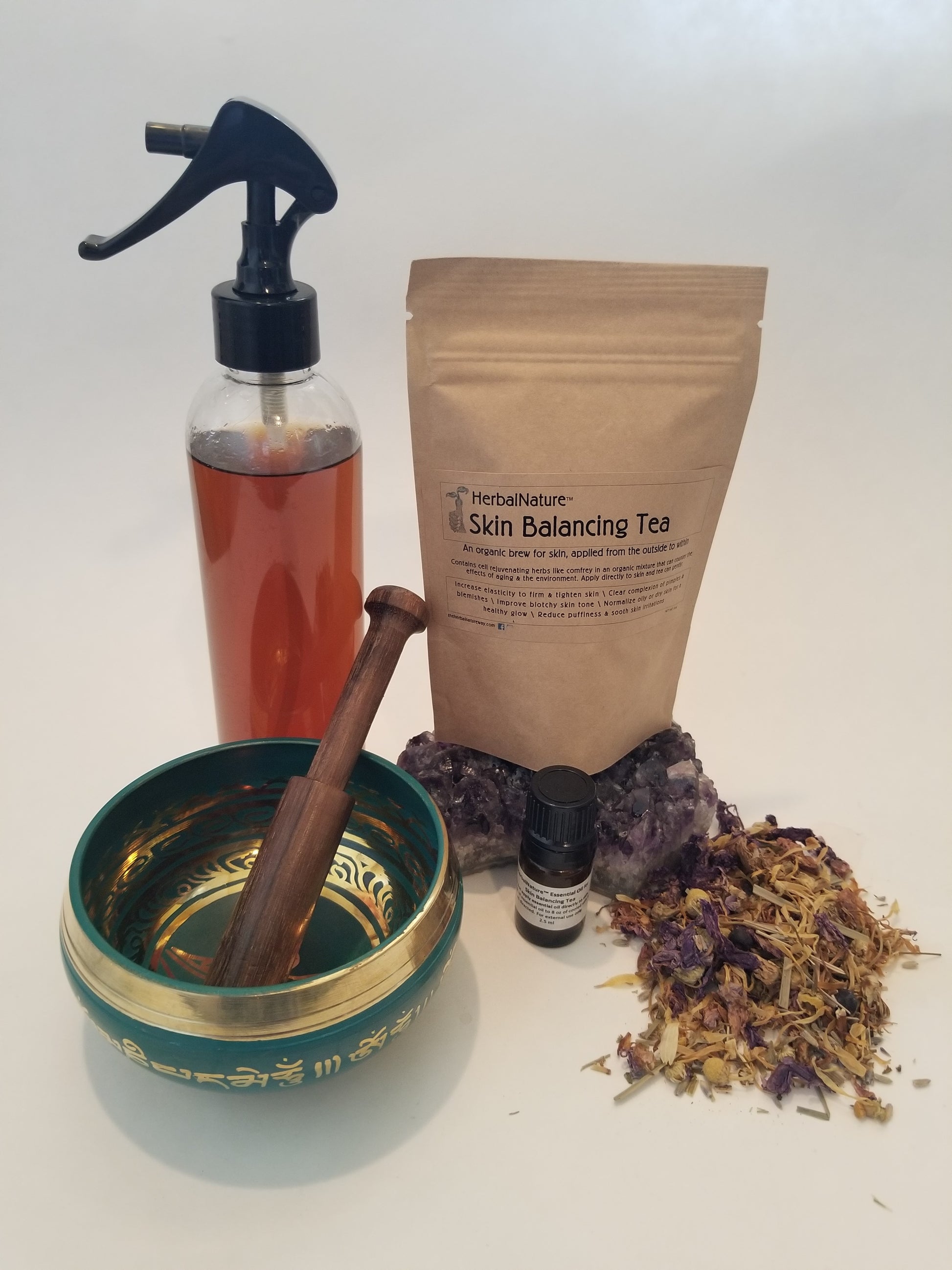 An organic & wildcrafted mixture of roots, barks, seeds, flowers & leaves to balance the skin and counter effects from the environment and aging.